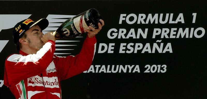 Después de su gran victoria, Alonso agradeció el apoyo de miles de aficionados que llenaron de banderas españolas el Circuito de Cataluña.