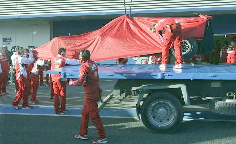 El F14T de Ferrari no ha comenzado con buen pie los primeros entrenamientos de pretemporada en la Fórmula 1, y se ha detenido en su primera vuelta, cuando Kimi Raikkonen se disponía a hacer las primeras pruebas en el circuito de Jerez.