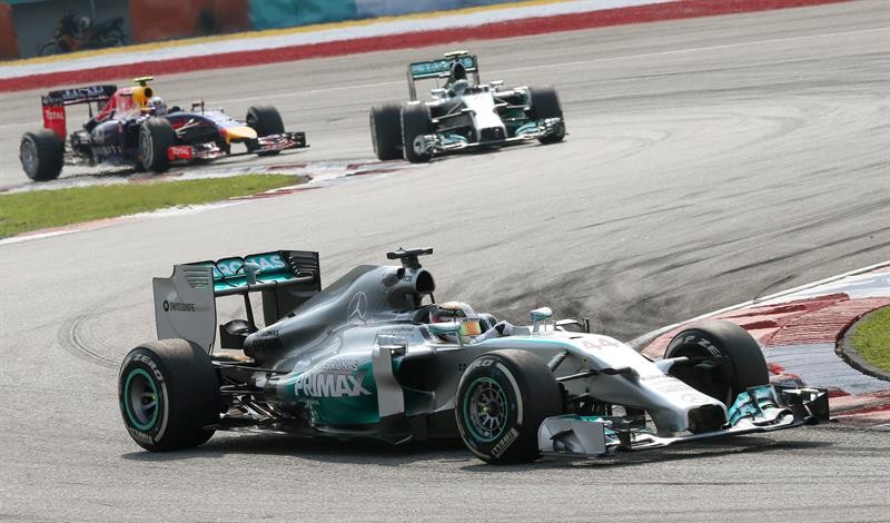 Lewis Hamilton se impuso en el GP de Malasia, seguido por su compañero de equipo Nico Rosberg y Sebastian Vettel.