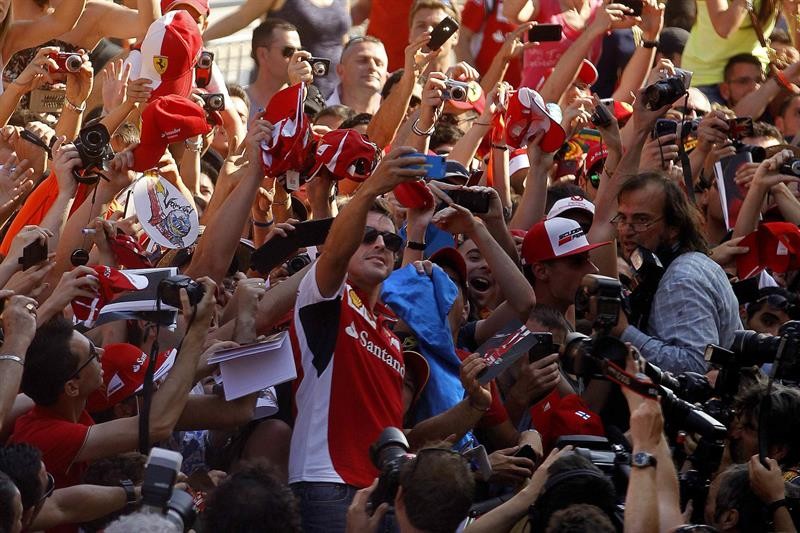Se nota que Fernando Alonso está en casa. Miles de aficionados de acercaron a Montmeló para sacar una fotografía de su ídolo.