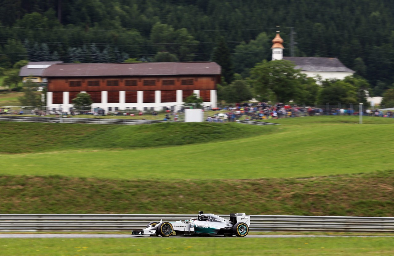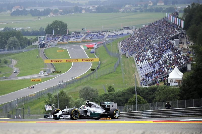 El piloto alemán Nico Rosberg acelera su monoplaza durante los primeros entreamientos libres del Gran Premio de Austria.