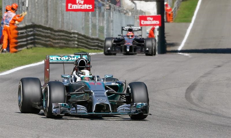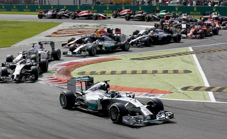 Nico Rosberg, en cabeza en el momento de la salida en Monza, adelantando así a un Lewis Hamilton que había partido desde la pole position.