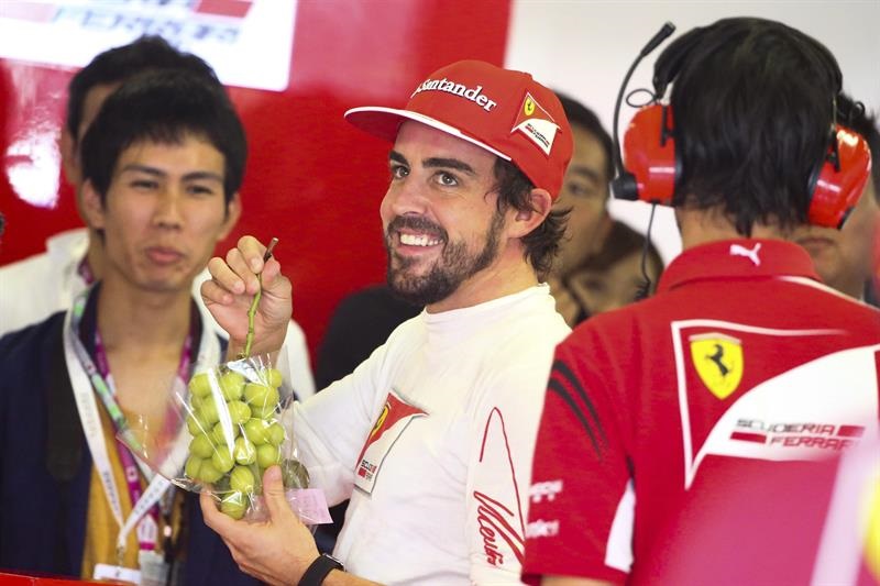 El piloto español acabó séptimo en los libres del viernes y dejó una de las imágenes curiosas del Gran Premio de Japón comiendo unas uvas en el garaje de Ferrari.