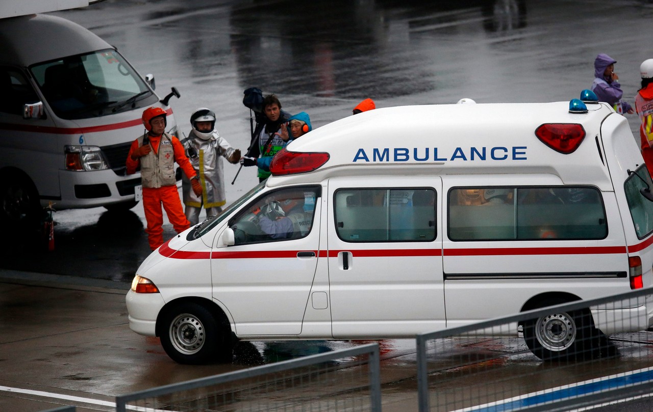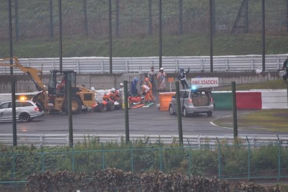 Bianchi fue trasladado "inconsciente" en ambulancia a un hospital cercano al circuito de Suzuka. El monoplaza del piloto de Marussia chocó contra la grúa que retiraba de la pista el Sauber del alemán Adrian Sutil, accidentado instantes antes.