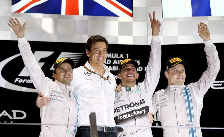 Otros de los triunfadores en el cierre de la temporada fueron los pilotos de Williams, el brasileño Felipe Massa (i) y el finlandés Valtteri Bottas (d), al acabar en segunda y tercera posición, respectivamente.