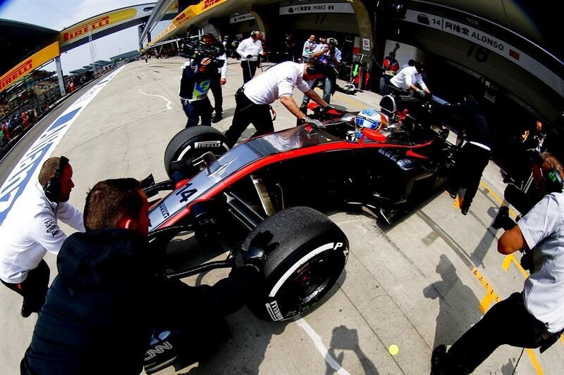 El español Fernando Alonso (McLaren), bicampeón mundial y ganador en Shanghái en 2005 (Renault) y 2013 (Ferrari), quedó eliminado en la primera ronda de la clasificatoria, y saldrá desde la decimoctava posición de la parrilla, tras marcar un tiempo de 1 minuto, 39 segundos y 280 milésimas.