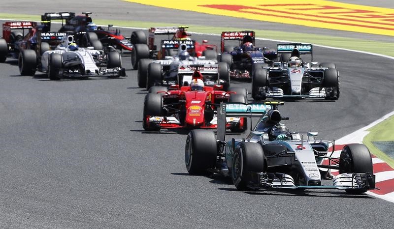 Así fue la salida del Gran Premio de España, con Rosberg en cabeza, y Hamilton perdiendo puestos.