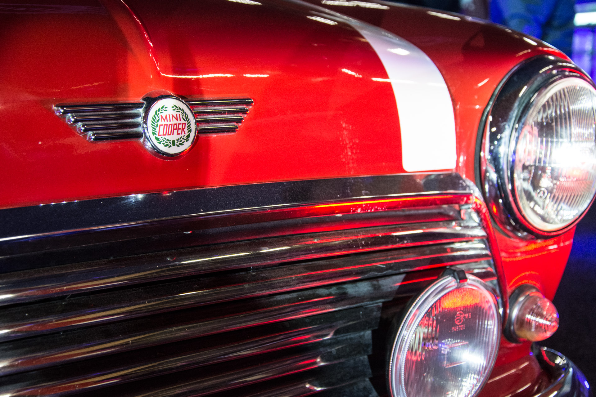 Un detalle del frontal del MINI clásico presente en la exhibición.