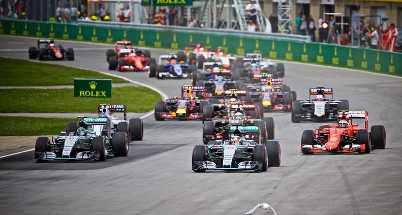 Momento de la salida del Gran Premio de Canadá en el circuito Gilles Villeneuve.