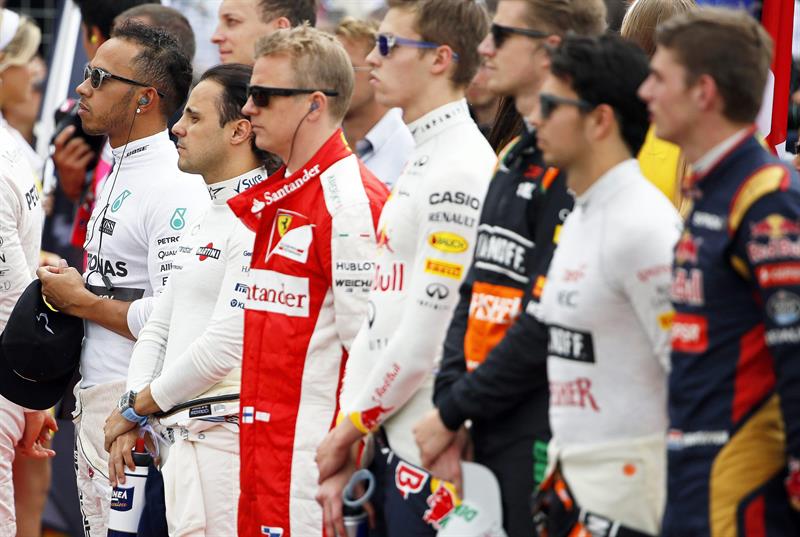 Toda la parrilla en pie escuchando el himno británico antes de que arranque el Gran Premio.