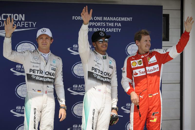 Hamilton logró la pole por delante de su compañero Rosberg y del Ferrario de Sebastian Vettel.