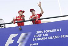 Raikkonen, junto a Vettel, saluda al público durante una Gran Premio de este año. | EFE