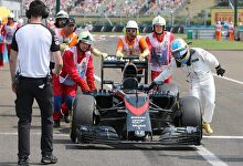 Fernando Alonso empuja el McLaren tras su avería en la Q2. | EFE