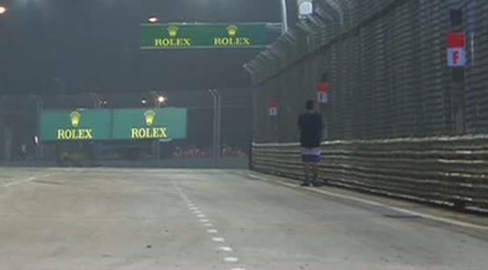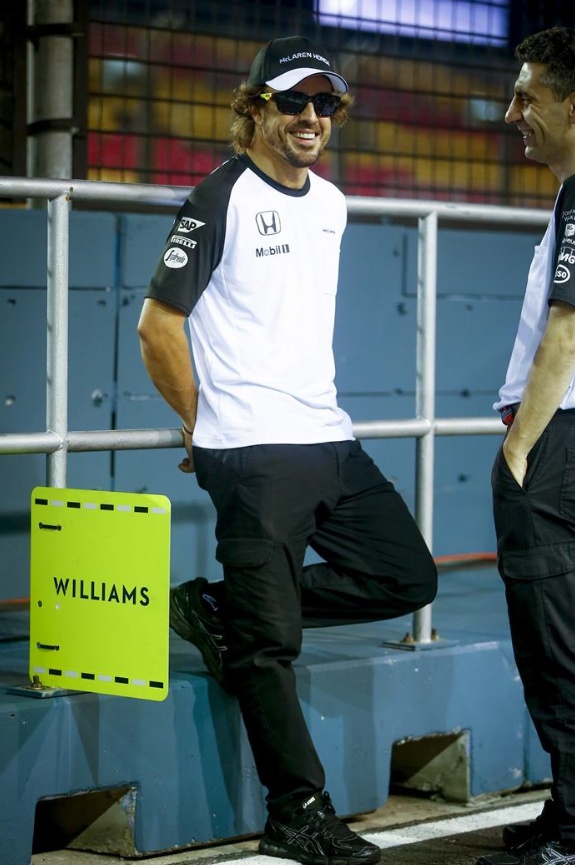 Fernando Alonso, en el circuito de Marina Bay poco antes de participar en la segunda sesión de libres, en la que el asturiano marcó el octavo mejor tiempo.