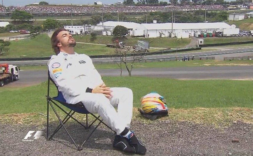 Fernando Alonso no puede más, pero lo disimula muy bien y le pone incluso un toque de humor. El McLaren del español no es capaz ni de acabar una calificación y en el Gran Premio de Brasil, el piloto asturiano ha visto como su monoplaza se paraba en plena Q1. El motor Honda ha vuelto a fallar.