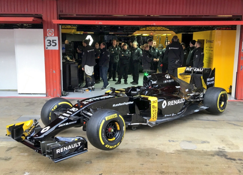 Renault F1 fue el más madrugador, dándose prisa en presentar su RS16, el arma que usarán para competir en la temporada de su vuelta a la Fórmula 1. Se esperaba que el coche fuera amarillo, pero en la escudería del rombo han querido sorprender con unos colores que parecen tener reminiscencias del antiguo equipo Lotus, ya que está cubierto de color negro, con algunos detalles amarillos y blancos. Los pilotos son Kevin Magnussen y el debutante Jolyon Palmer.