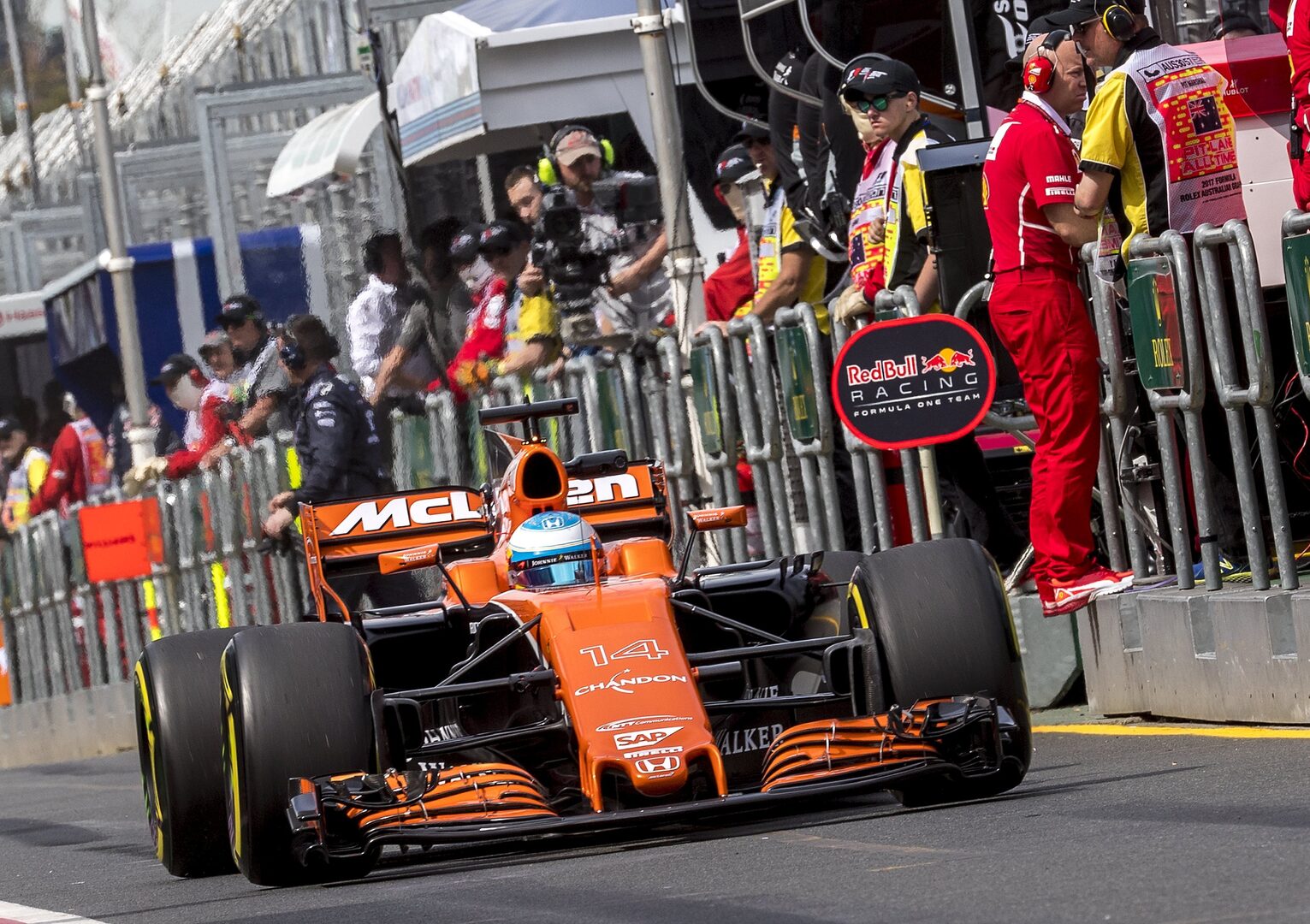 La jornada de los españoles Carlos Sainz (Toro Rosso) y Fernando Alonso (McLaren-Honda) fue de mejora entre la primera y la segunda sesión, y sin incidentes mecánicos, lo cual es muy positivo, especialmente en el caso del bicampeón mundial asturiano (en 2005 y 2006), cuyo coche es el que más dudas arroja en la tercera temporada de relación entre McLaren y la fábrica de motores japonesa Honda.