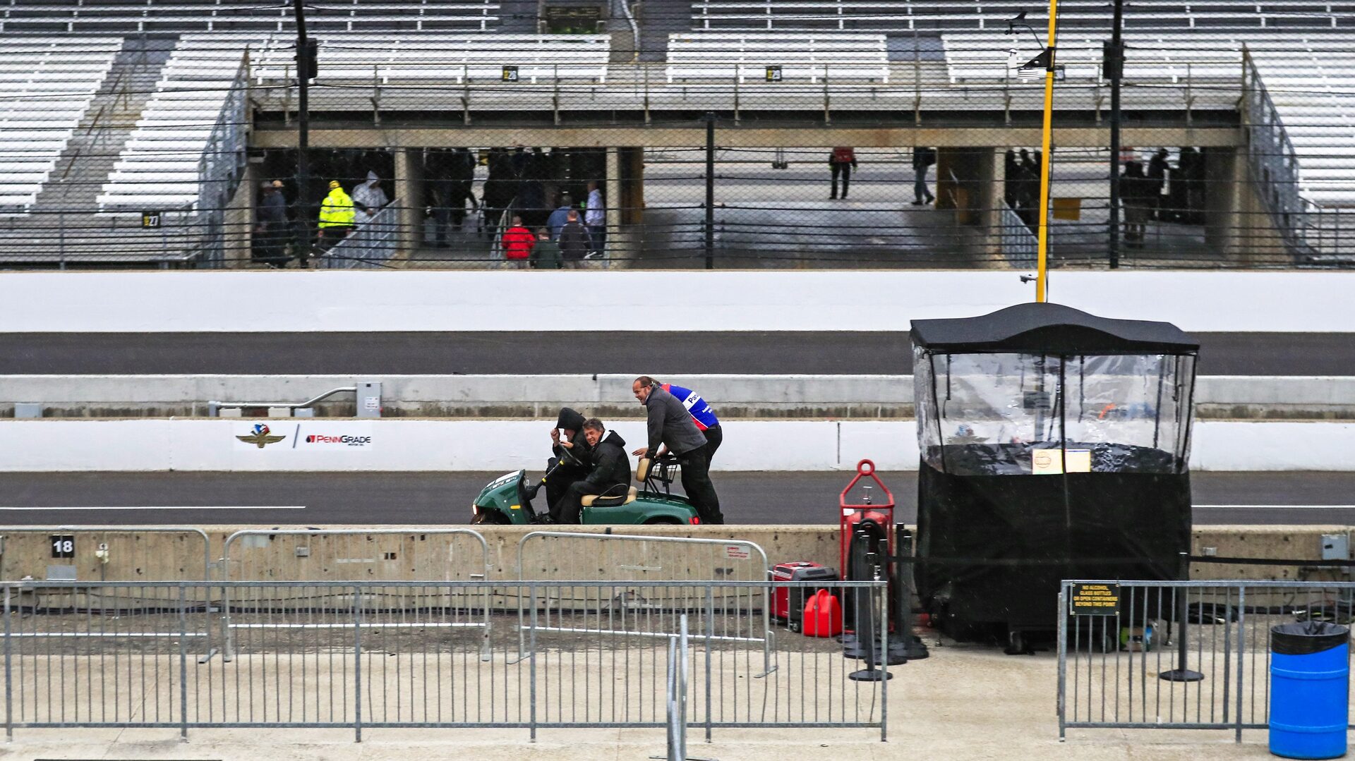 Una tormenta que descargó sobre el circuito de Indianápolis tres minutos antes de la hora fijada para el comienzo de la sesión de clasificación, ha obligado a retrasar el programa del sábado en la Fórmula Indy.