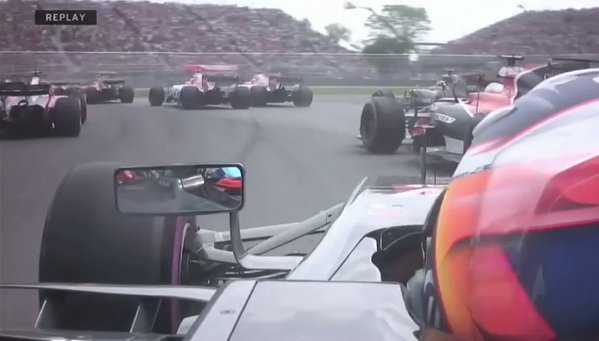 Nada más comenzar, el español fue embestido por detrás por Massa y acabó fuera de carrera.