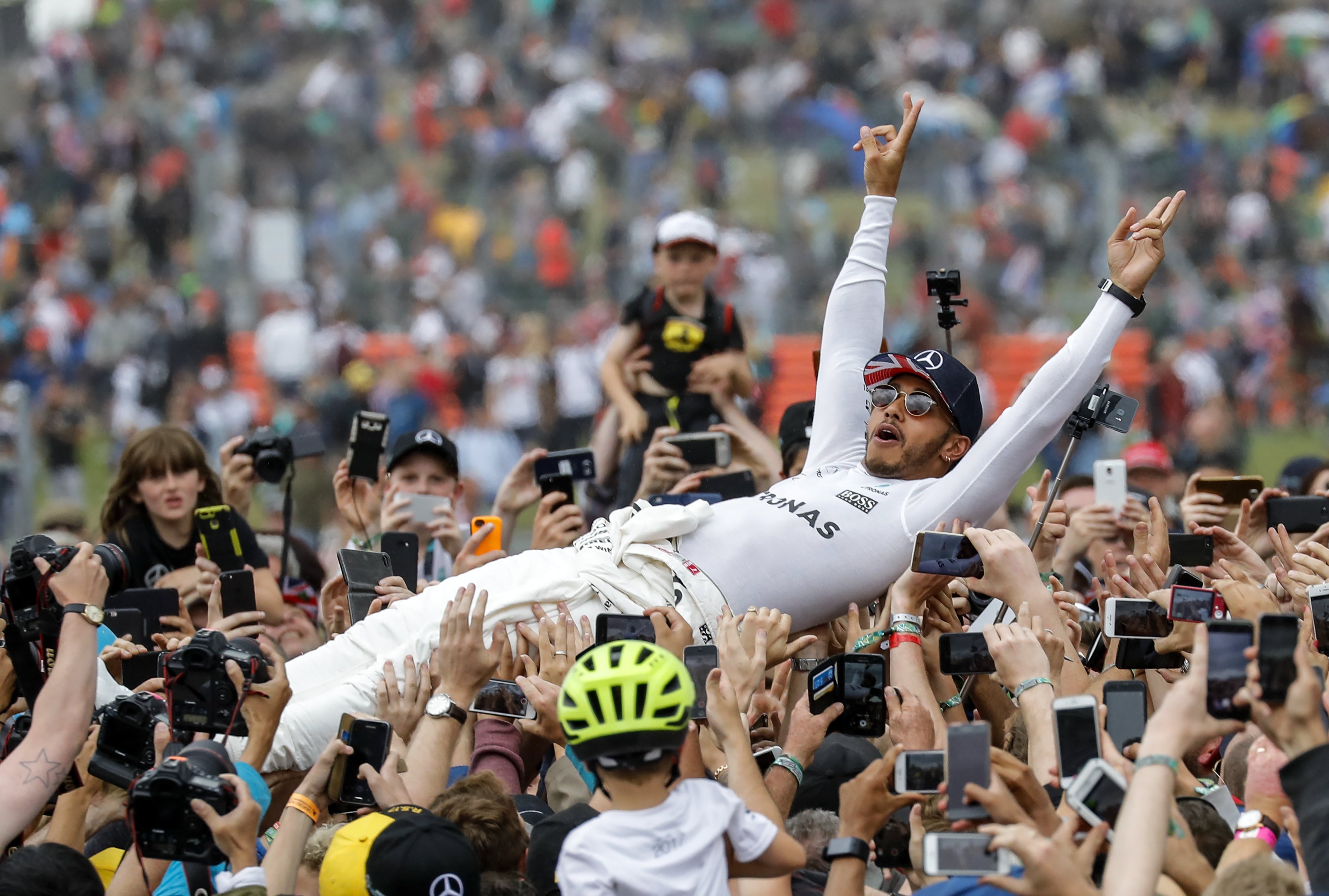 El británico Lewis Hamilton logró este domingo su cuarta victoria consecutiva en el GP de Gran Bretaña de Fórmula Uno, prueba que también ganó en 2008, al finalizar la carrera por delante de los finlandeses Valtteri Bottas, su compañero en Mercedes, y Kimi Raikkonen (Ferrari).