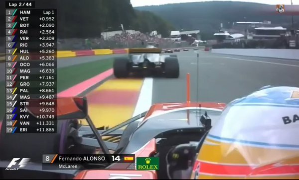 Fernando Alonso realiza una de las maniobras del campeonato con un gran adelantamiento