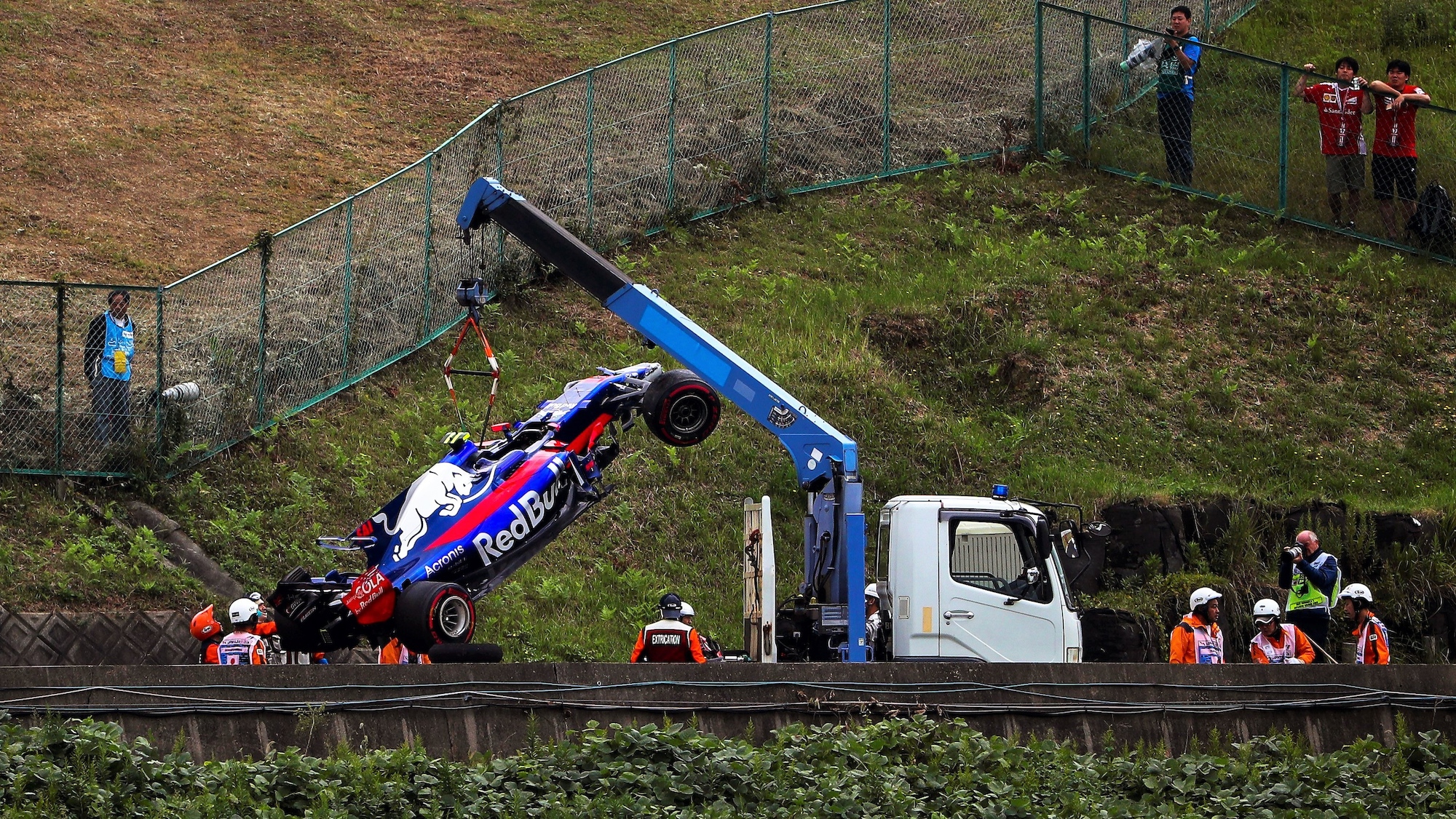 El madrileño perdió el control de su Toro Rosso tras pisar el piano, a la salida de la característica horquilla del circuito de Suzuka, e impactó contra las protecciones laterales.