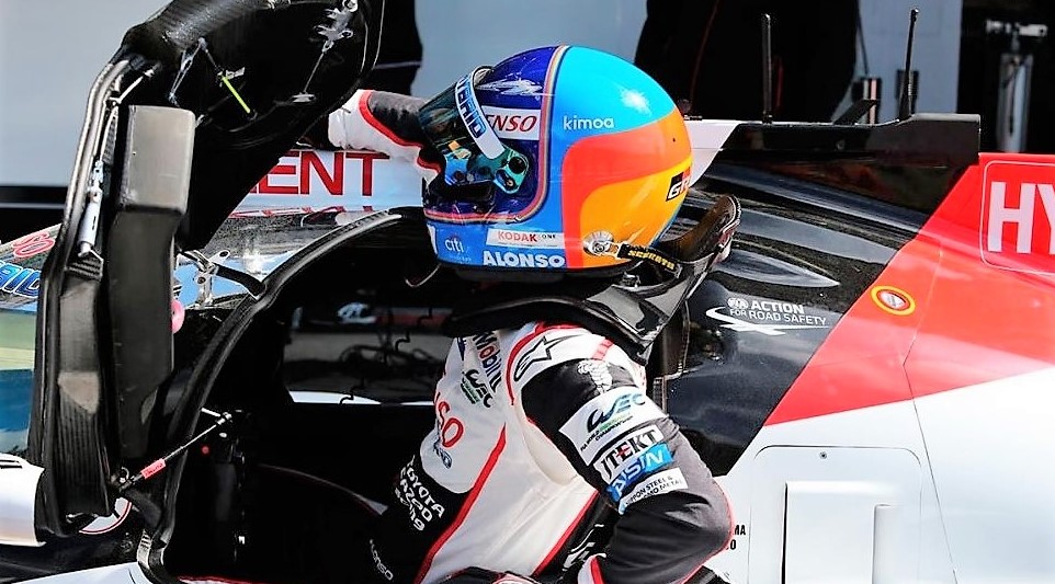 Cuando se cumplían 35 minutos de la sesión de 90, Alonso tomó el volante del TS050 número 8 para relevar a Buemi y estableció el mejor tiempo de todos: 1:58.392.