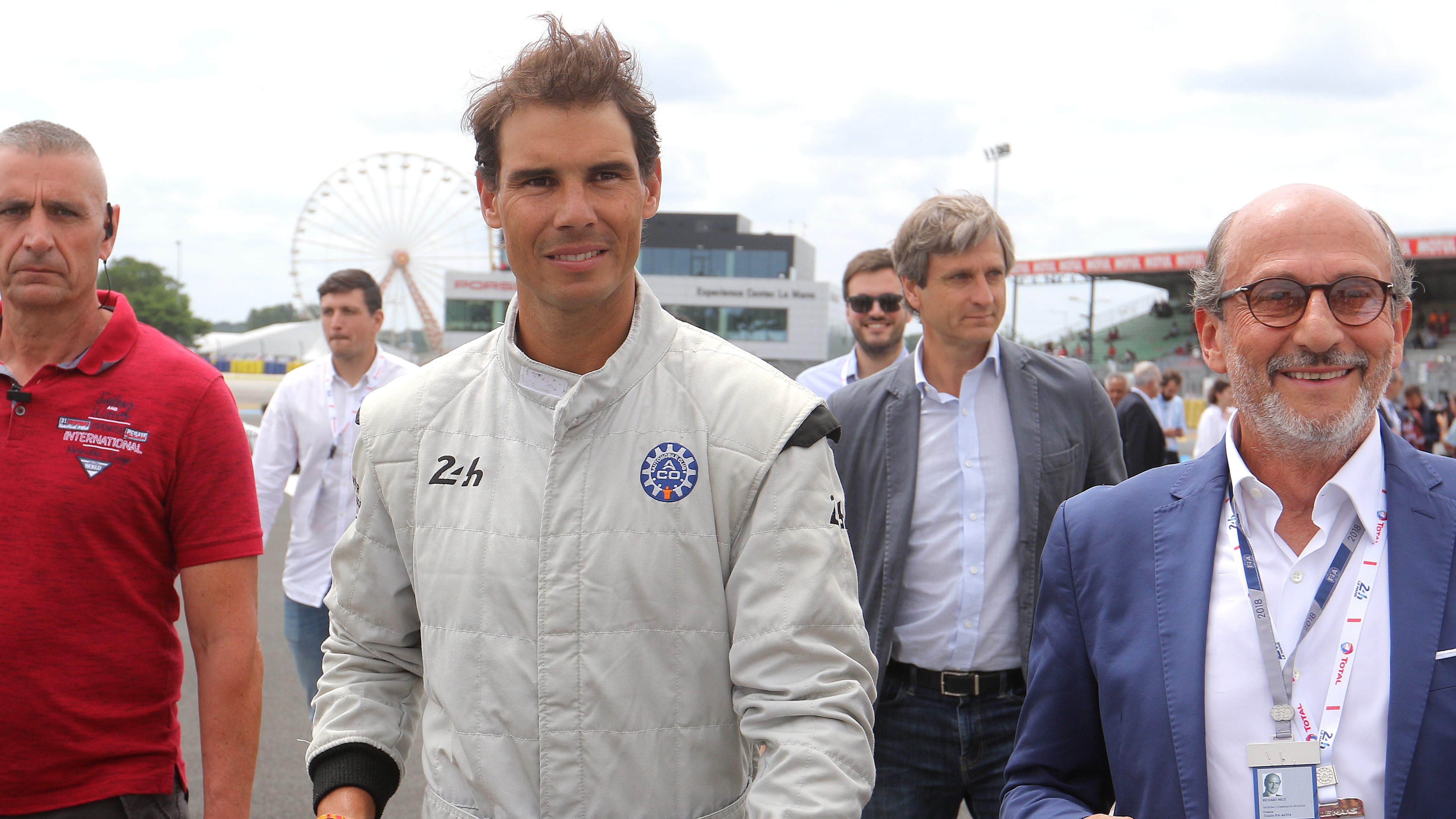 Antes de dar el banderazo y de que los 60 coches que compiten formasen en la parrilla de salida, el tenista mallorquín dio una vuelta de reconocimiento al circuito de La Sarthe (13.626 metros) con un bólido biplaza conducido por el austriaco Alex Wurz, vinculado al equipo Toyota.