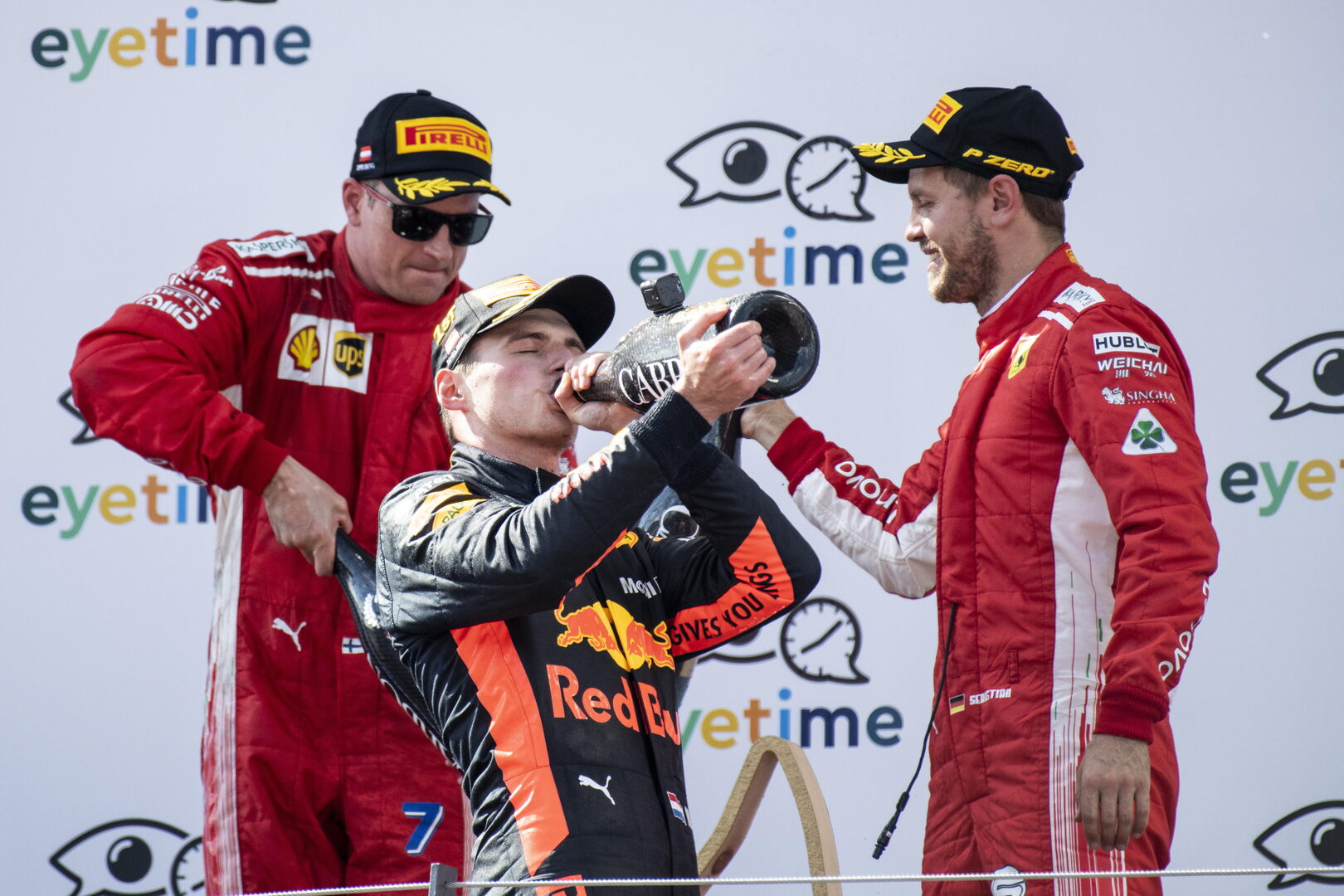 El podio lo integran también los dos Ferrari, que en el último tramo de la carrera no recibieron ninguna indicación, al margen de la recibida por Raikkonen para que atacase a Verstappen, vencedor este año por primera vez en una carrera, pero que cuenta con tres más en su historial. La de hoy ha sido la tercera victoria de Red Bull este curso, tras la dos de Ricciardo en China y Mónaco.