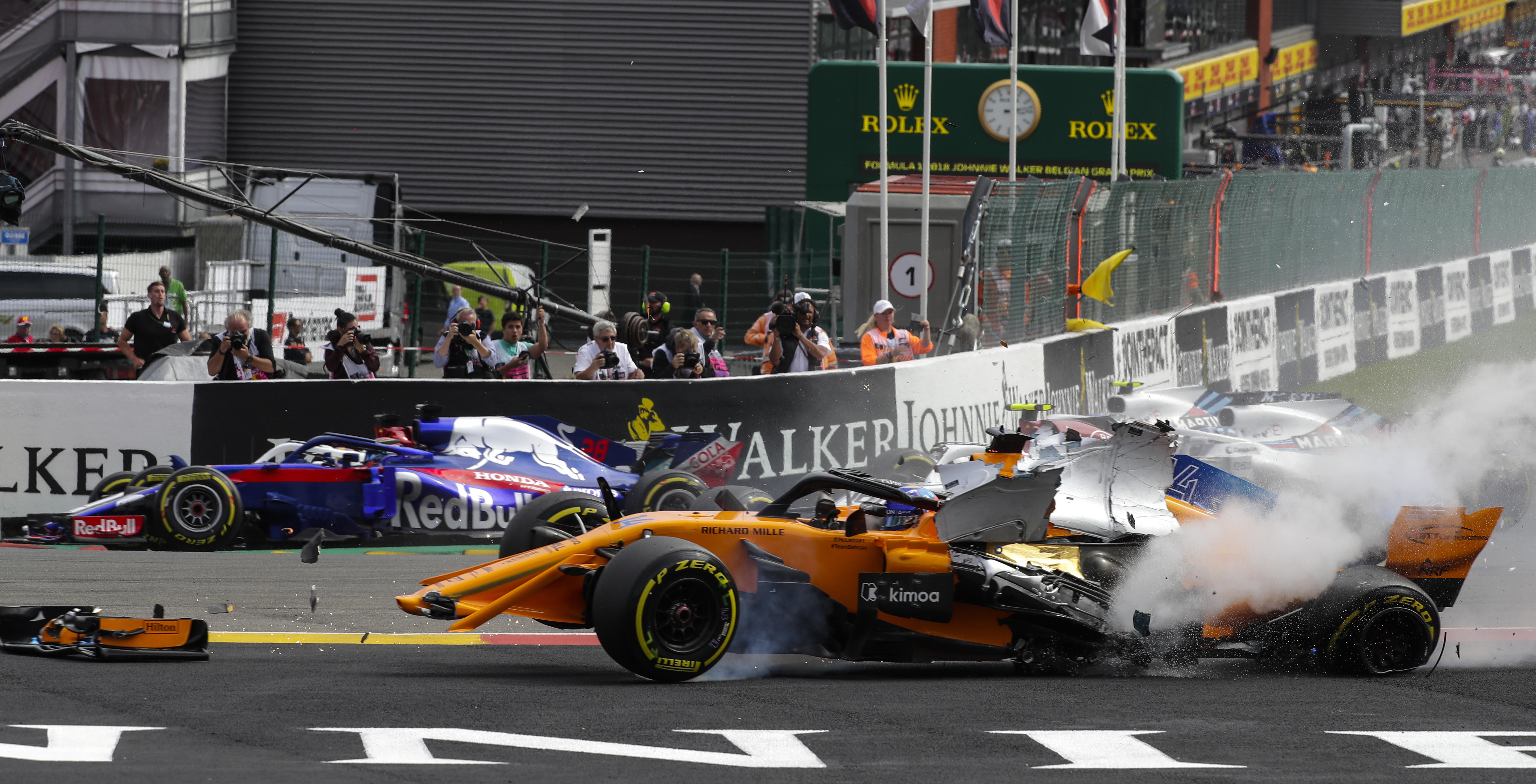 El tremendo accidente de Alonso en la primera curva del GP de Bélgica