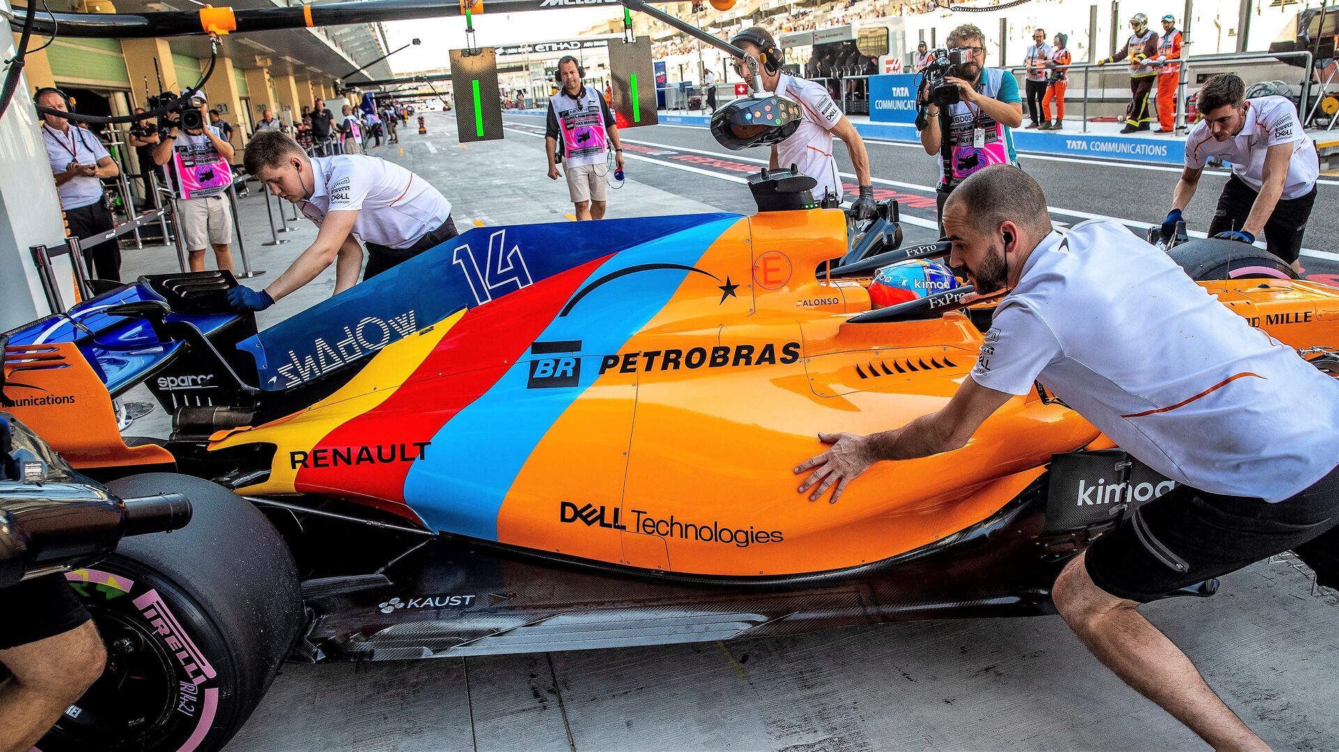Alonso, 32 veces triunfal en la F1, y que según Zak Brown, el jefe de equipo de McLaren, podría echar una mano en el desarrollo del monoplaza del año próximo, acabó decimotercero una sesión que concluyó de noche, a 25 grados y con 28 en la pista. En la mejor de sus 34 vueltas, Fernando —que con motivo de su último Gran Premio luce un diseño especial tanto en el coche, como en el casco—, se quedó a casi segundo y medio del crono de Bottas, que el domingo intentará repetir la victoria que logró en Yas Marina el año pasado. El mexicano Sergio Pérez (Racing Point Force India) se inscribió por detrás de los dos españoles en la tabla de tiempos. Checo repitió 31 veces el trazado y en su mejor giro se quedó a segundo y medio del crono de Bottas.