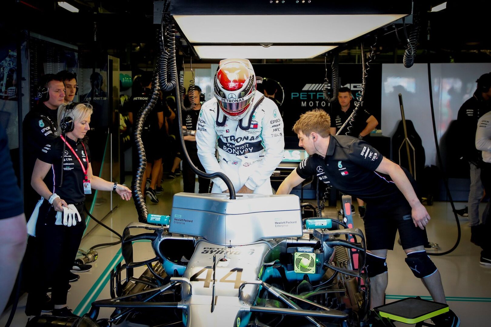 El pentacampeón británico regresó al campeonato de la misma forma que se marchó del Gran Premio de Abu Dabi 2018 que cerró la temporada pasada: en el primer puesto, acompañado en el segundo por el alemán Sebastian Vettel (Ferrari) en la primera sesión y por su compañero finlandés Valtteri Bottas en la segunda.