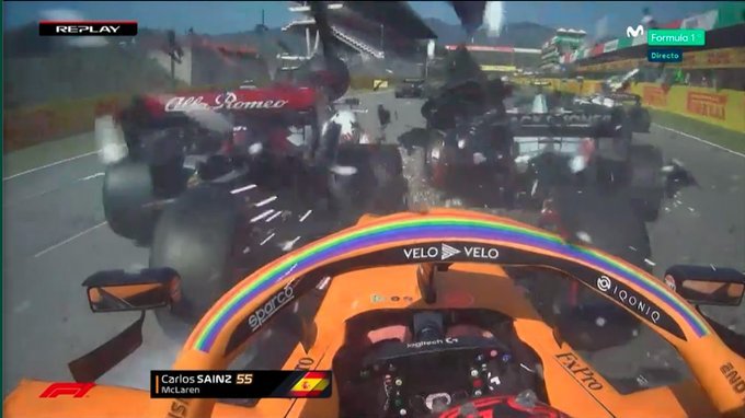 Sainz afirmó que se encuentra "bien" y que no le duele "nada" tras el incidente de la vuelta 7. "Solo tengo un golpe en la muñeca y en la mano", dijo, antes de explicar la situación. "Por la mitad trasera de la parrilla, creíamos que la carrera se había relanzado. Hemos tenido que frenar y ha habido un efecto dominó. Hemos ido chocando todos con todos, yo iba de los últimos, cogiendo el rebufo del de delante para atacar, y cuando se han empezado a abrir todos y me he encontrado con el barullo de frente, ha sido una sensación que no se la deseo a nadie, a velocidad muy alta. Es una situación realmente peligrosa", manifestó.