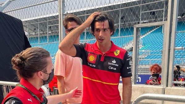 Carlos Sainz se ha llevado un golpe este miércoles al volver a la zona de boxes tras el track walk sobre el circuito de Miami, donde se celebrará el domingo el Gran Premio de Miami. El golpe fue al intentar pasar por una de las pequeñas aperturas que hay en las vallas que comunican el Pit-Lane con la pista. Tras completar el track walk, el de Pozuelo se disponía a volver al Pit-Lane para seguir trabajando.