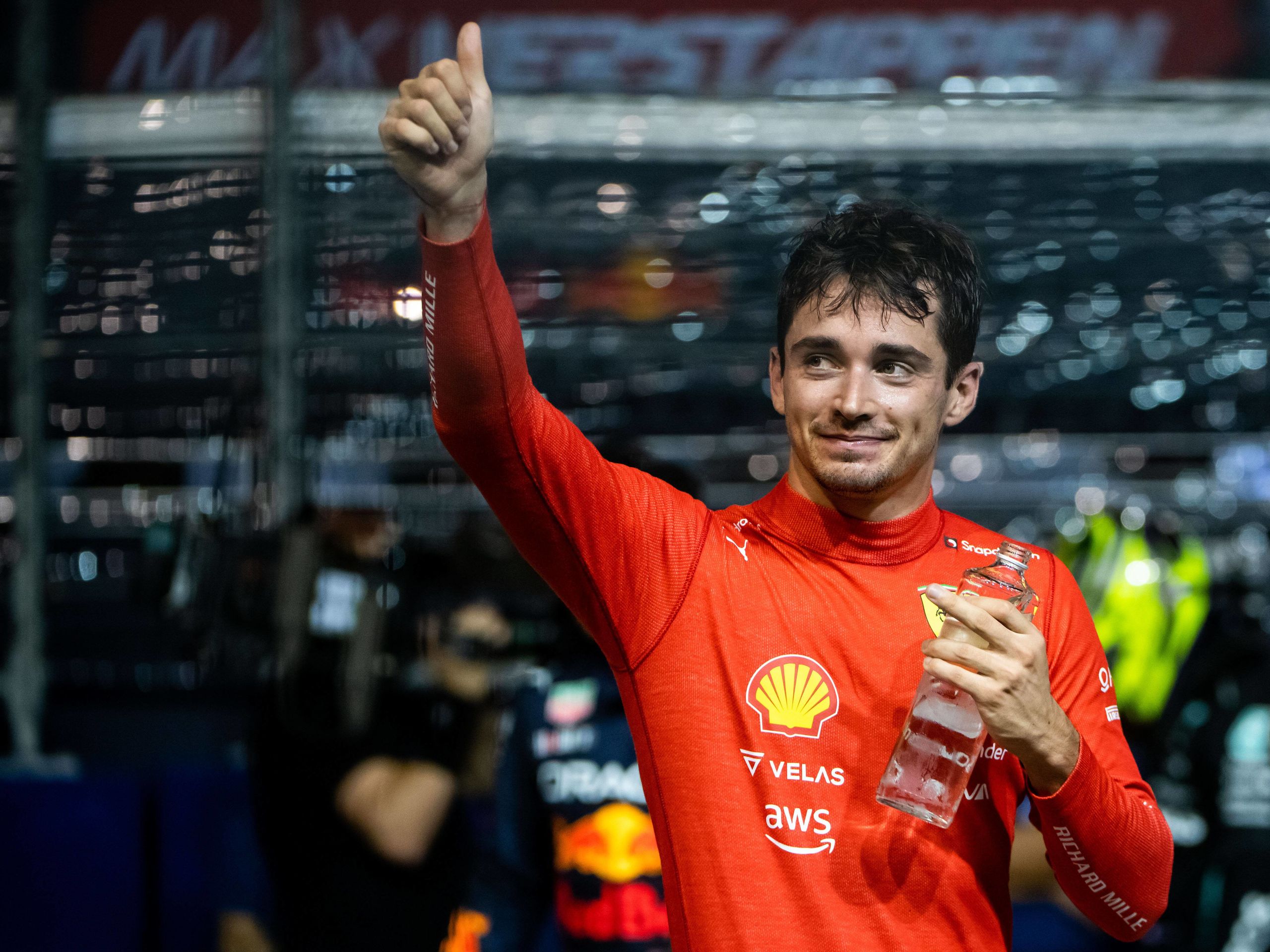 Leclerc ha conseguido la decimoséptima pole de su carrera y la novena del año al cubrir —con neumáticos blandos— los 5.603 metros de la pista singapurense en un tiempo de 1:49.412, siendo sólo 22 milésimas más rápido que Checo y 54 milésimas mejor que Hamilton, en una sesión marcada por las condiciones cambiantes del trazado por la intensa lluvia caída en Singapur.