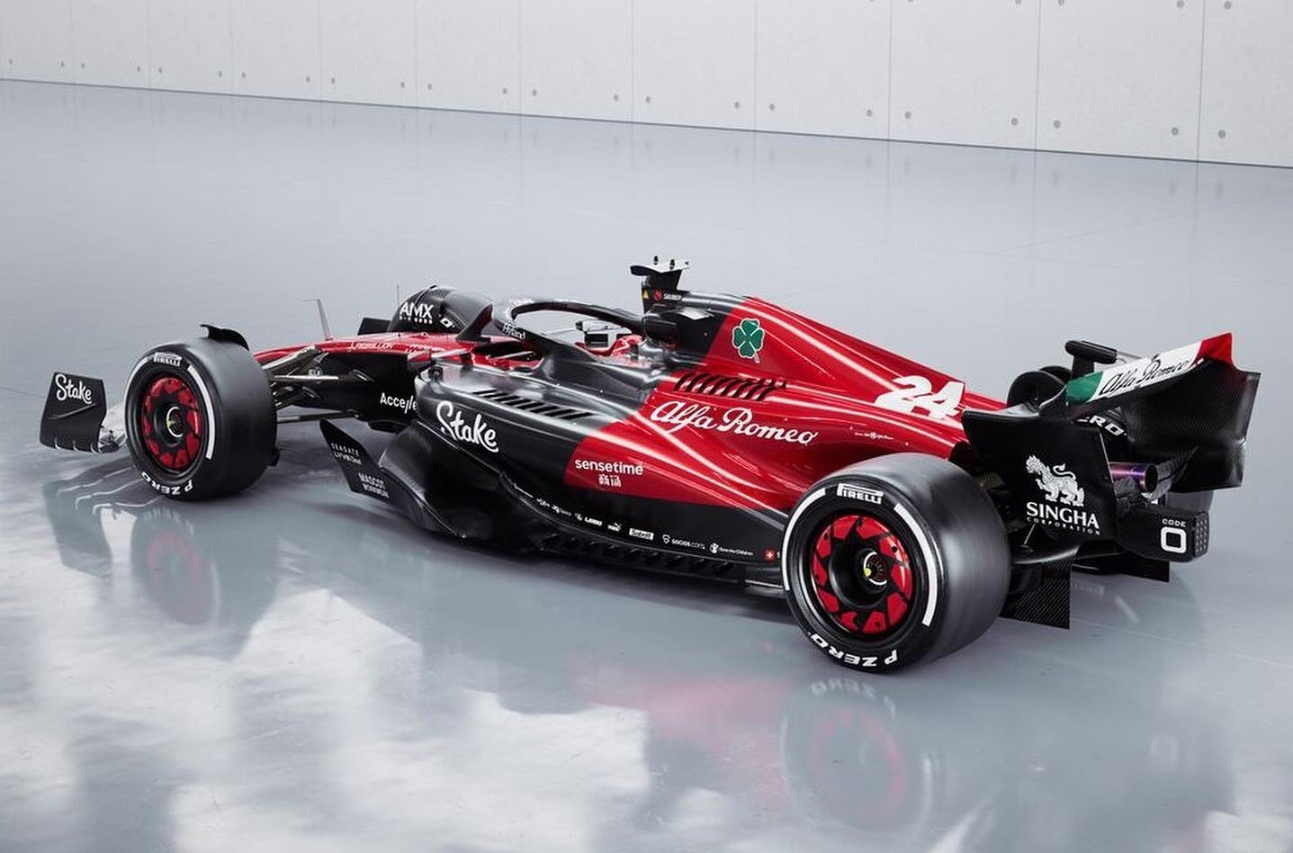 El C43 es el último monoplaza de Sauber patrocinado por Alfa Romeo. La salida del patrocinador principal, Orlen, ha significado el adiós del polaco Kubica como piloto probador. El nuevo “title sponsor" del equipo suizo es Team Stake. Hay mucho rojo en el monoplaza.