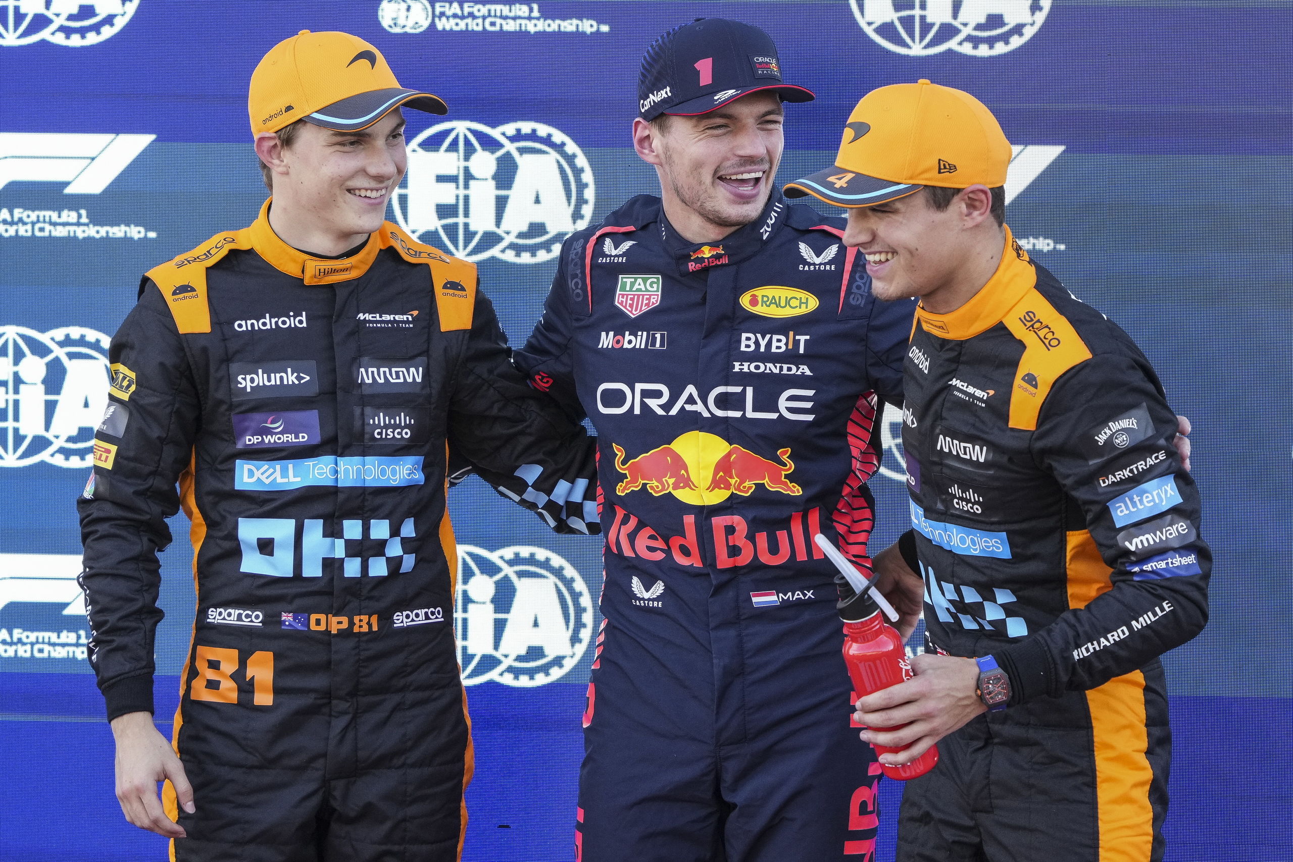 Firmó la pole con un tiempo de 1:28.877 y por detrás, a más de medio segundo, aparecieron ambos McLaren, que siguen dando pasos adelante en su fulgurante evolución que les ha hecho pasar de empezar la temporada como uno de los peores equipos a ser "el mejor del resto". Y dentro de su disputa interna, Piastri, recientemente renovado hasta 2026, le ganó la partida a su compañero Norris.