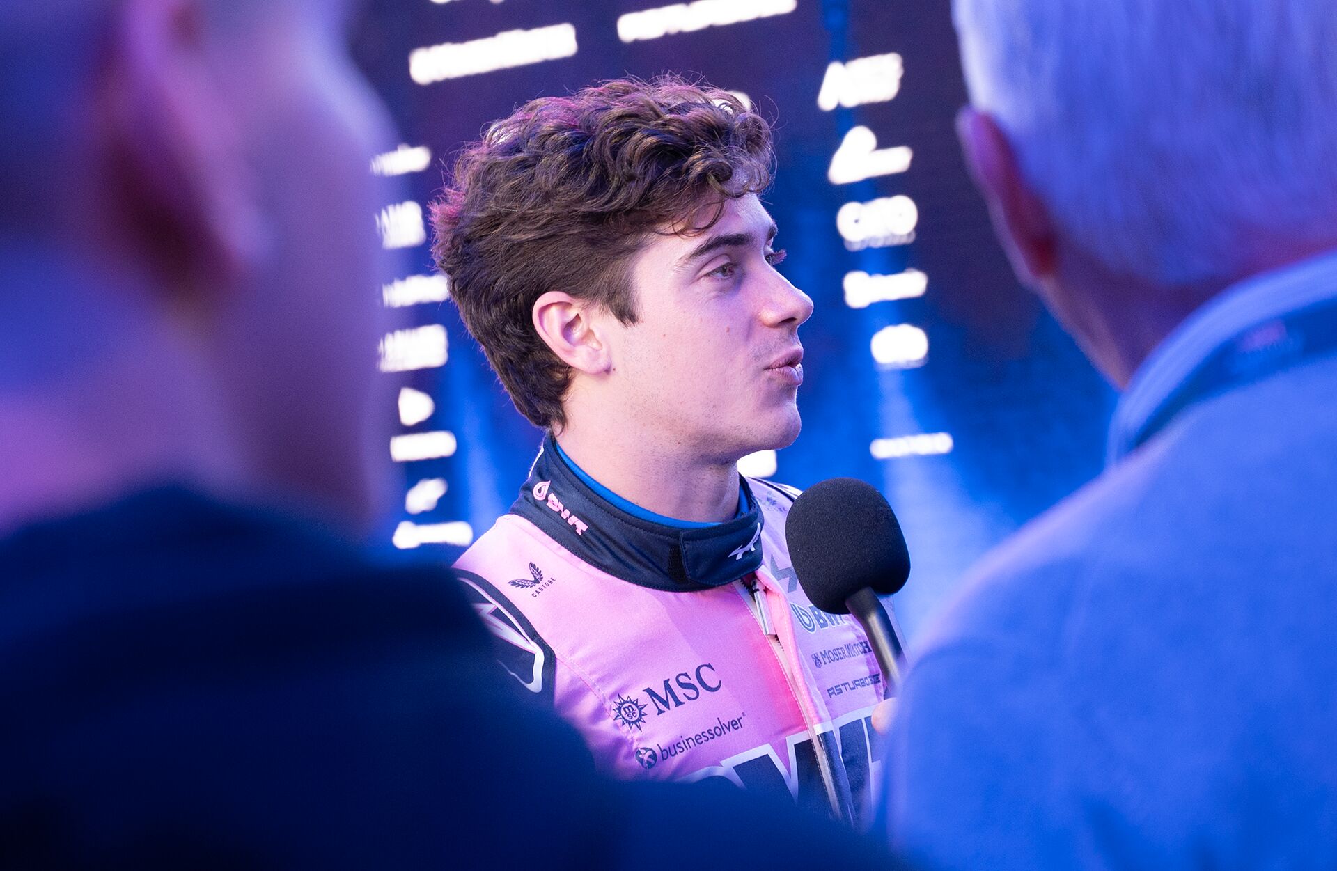 Los pilotos Pierre Gasly y Franco Colapinto, junto al nuevo coche BWT Alpine Formula One Team.