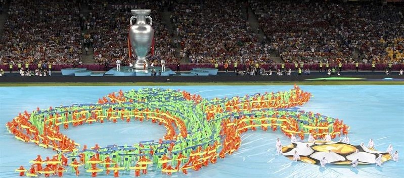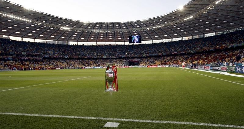 Imagen del trofeo de la Eurocopa 2012 en el Olímpico de Kiev.