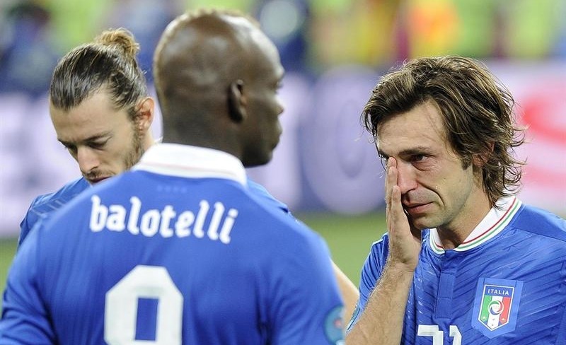 Las dos estrellas de la azzurra, Pirlo y Balotelli, lamentan amargamente la derrota en la final.