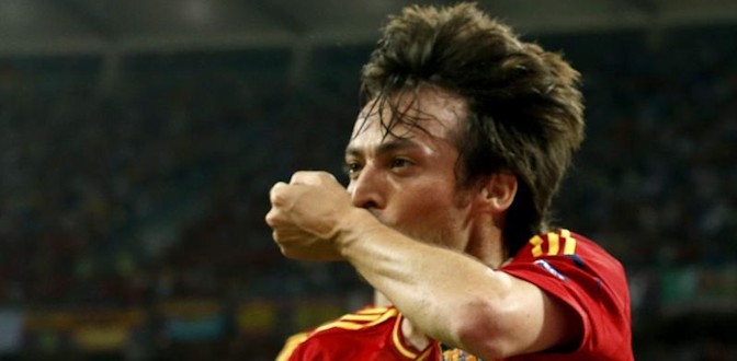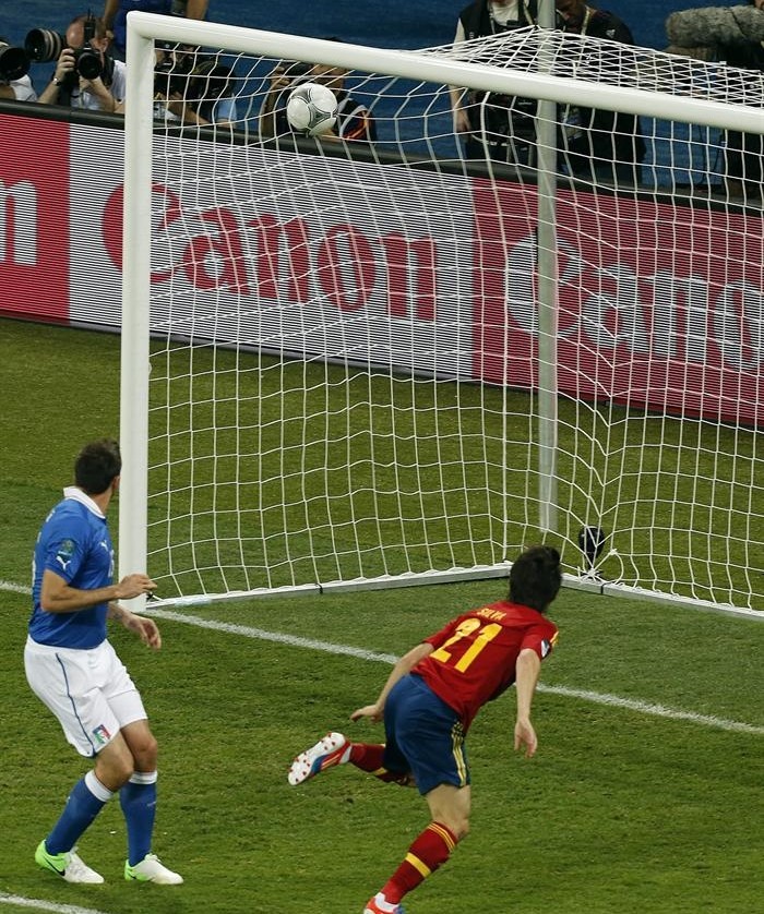 Momento en el que David Silva anota el primer gol de España.