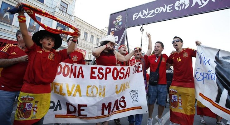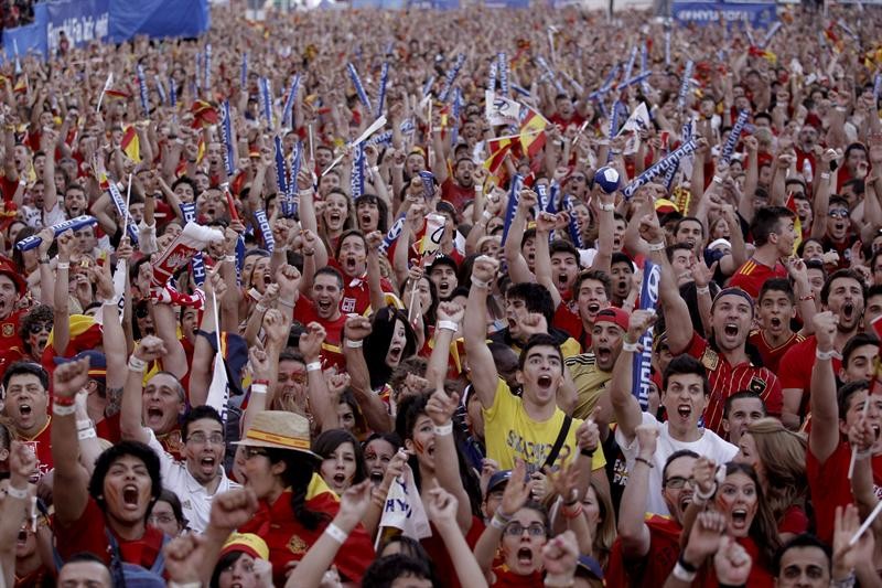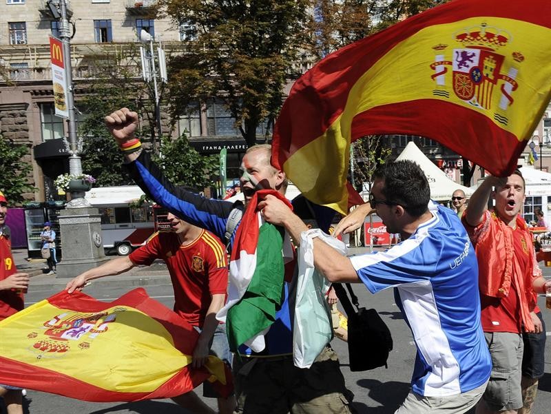 Españoles e italianos gritan y animan a sus respectivas selecciones.