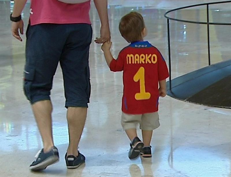 Aficionados españoles en el aeropuerto de Madrid-Barajas, momentos antes de viajar a Kiev.
