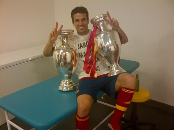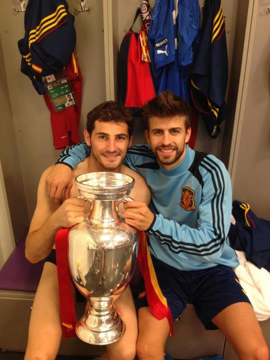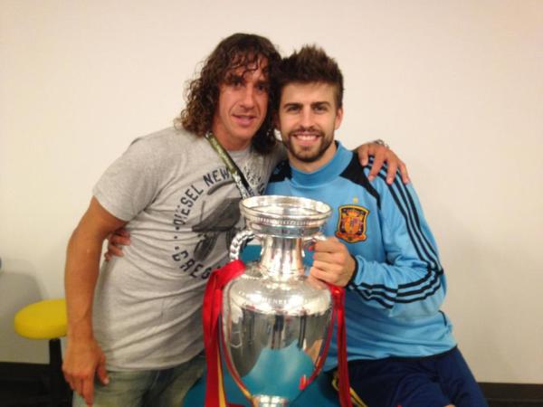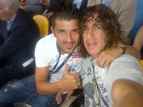 Puyol y Villa, las dos grandes bajas de España para la Eurocopa, no quisieron perderse la final de Kiev. "Vamoooooos!!!!!" tuiteó el capitán azulgrana.