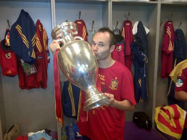 Puyol fotografía a sus compañeros desde abajo justo en el momento de levantar la copa de campeones. "Felicidades!!!!!" escribió.