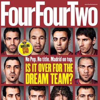 Four Four Two abre su última edición, correspondiente al mes de octubre, con un reportaje especial sobre el Barcelona. Bajo el título "¿Es el final del Dream Team?", la publicación se hace eco de la conquista de la Supercopa de España por parte del Real Madrid y pone en duda que los azulgranas, con Tito Vilanova en el banquillo, vayan a seguir ganando.
