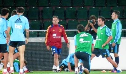 Una vez más, el seleccionador español no ha querido dar pistas en la sesión sobre el once que va a poner en liza, aunque todo hace indicar que jugará con un nueve nato: Fernando Torres, David Villa o Roberto Soldado. El jugador del Chelsea parece contar con ventaja, habida cuenta de que está atravesando un gran momento de forma y de que el asturiano prácticamente acaba de recuperarse de una grave lesión, mientras que el valenciano parece ser la tercera opción.