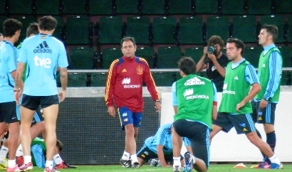 Mientras en un extremo del campo practicaban los porteros Iker Casillas, Víctor Valdés y Pepe Reina, en la otra mitad los 20 jugadores de campo disputaron un partidillo sin porterías y luego otro con guardametas. Finalizaron la práctica, que duró poco más de una hora, con disparos a puerta desde la frontal del área. Un aspecto éste en el que Vicente del Bosque ha querido hacer hincapié.