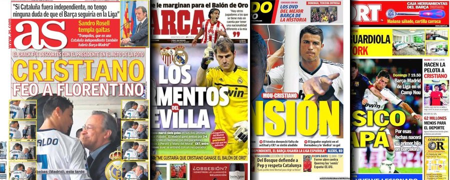 Portadas de las cuatro principales cabeceras de la prensa deportiva española.
