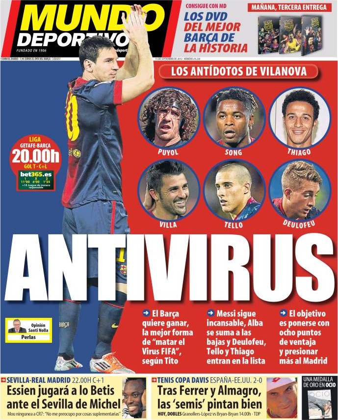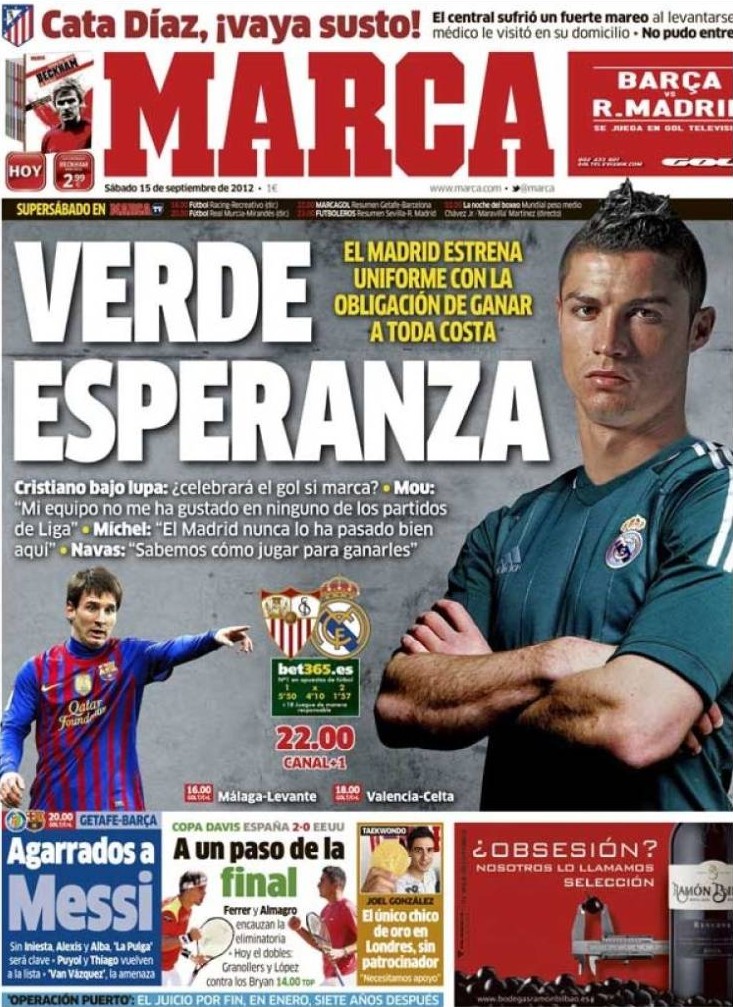 Prensa deportiva del 15 de septiembre de 2012